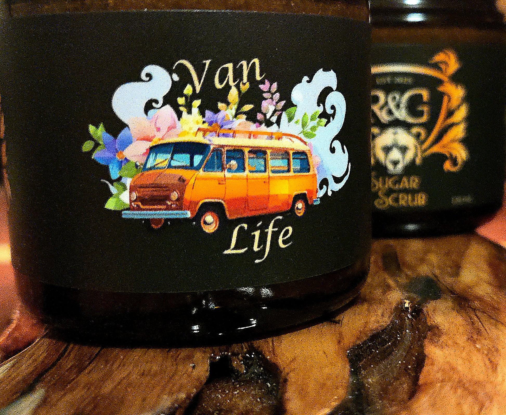 Inspired by the freedom of the open road, Van Life is a warm, invigorating blend that captures the essence of adventure. The sweet, comforting aroma of vanilla is complemented by the bright, zesty notes of orange and lemon, creating a refreshing and uplifting scent. A subtle hint of cinnamon adds a cozy, spicy undertone, evoking the feeling of sitting by a crackling campfire under the stars. This scent is perfect for those who crave both warmth and energy in their skincare routine.